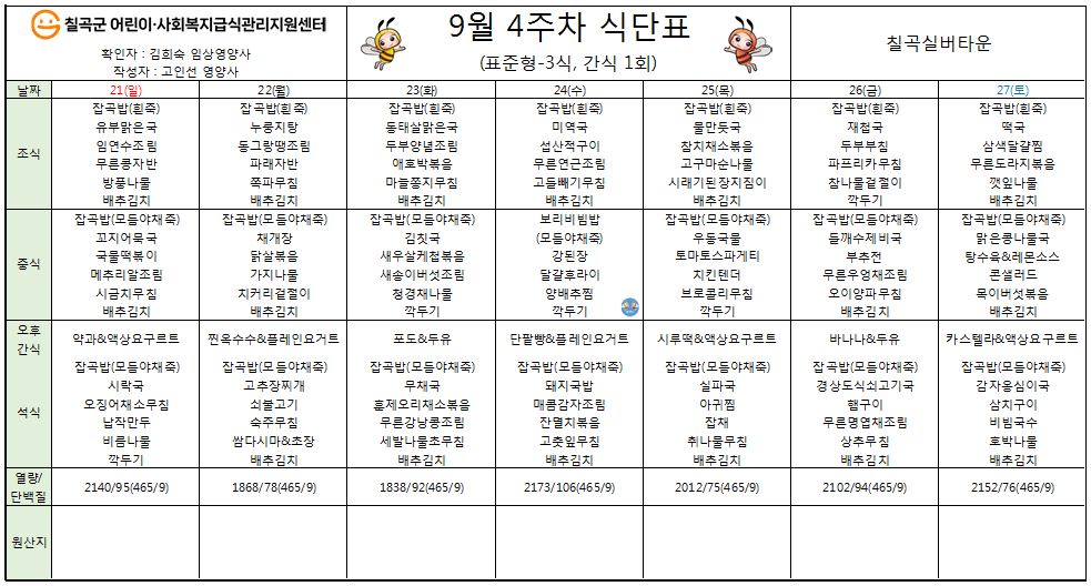 Á¦ ¸ñ | 2025³â 9¿ù 4ÁÖÂ÷ ½Ä´ÜÇ¥ ÀÔ´Ï´Ù *^^* | ||