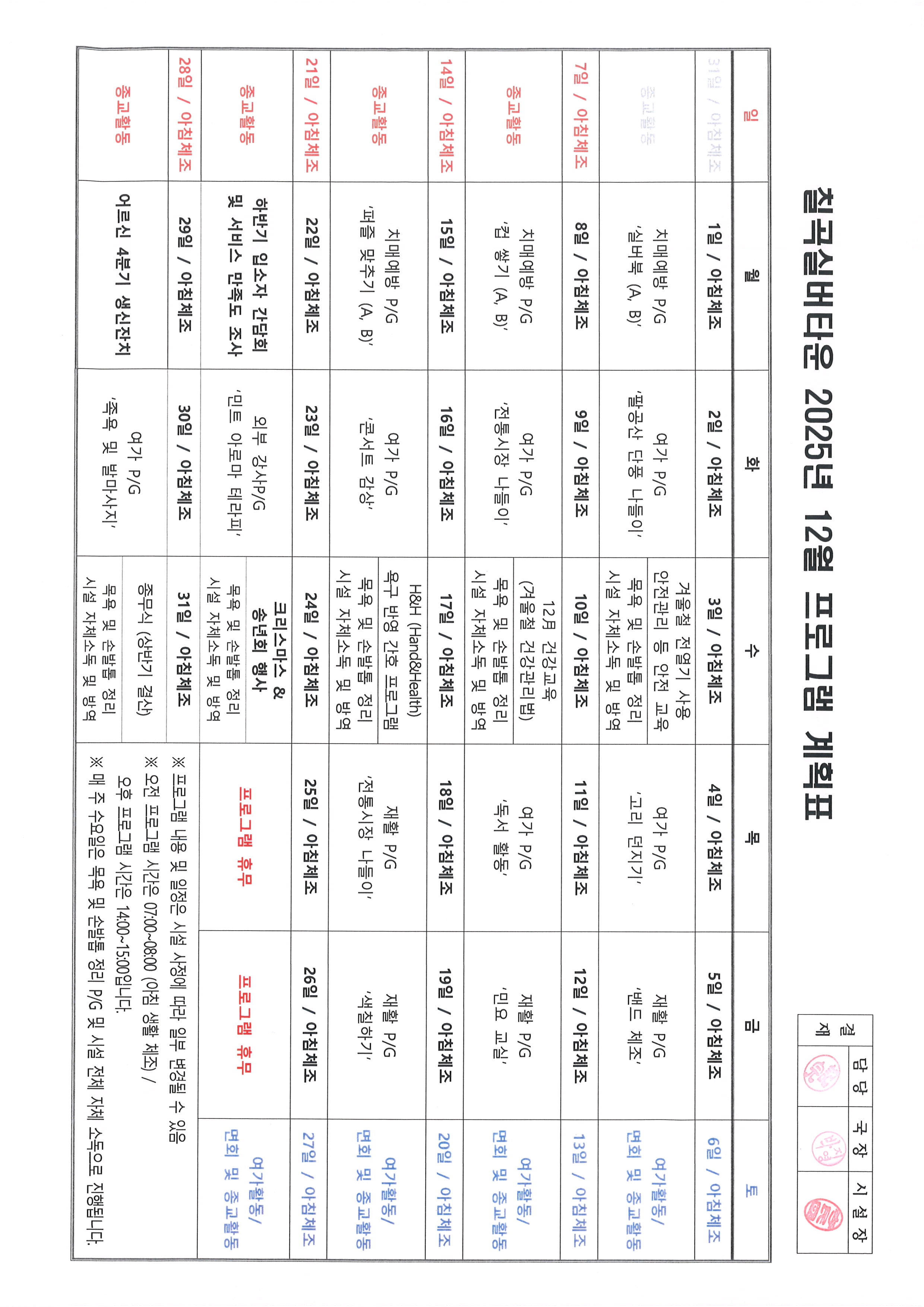 | Á¦ ¸ñ | 2025³â 12¿ù ÇÁ·Î±×·¥ °èȹǥÀÔ´Ï´Ù. *^^* | ||