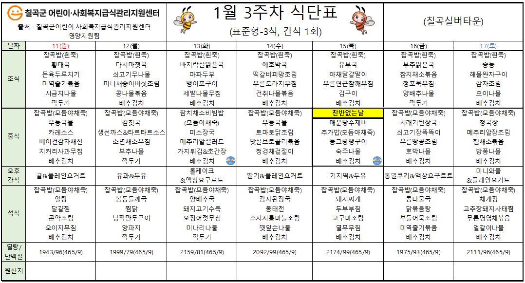 | Á¦ ¸ñ | 2026³â 1¿ù 3ÁÖÂ÷ ½Ä´ÜÇ¥ÀÔ´Ï´Ù. *^^* | ||