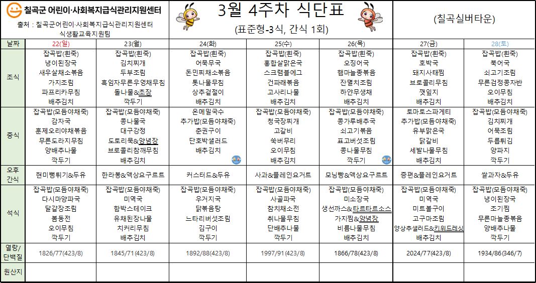 | Á¦ ¸ñ | 2026³â 3¿ù 4ÁÖÂ÷ ½Ä´ÜÇ¥ÀÔ´Ï´Ù. *^^* | ||