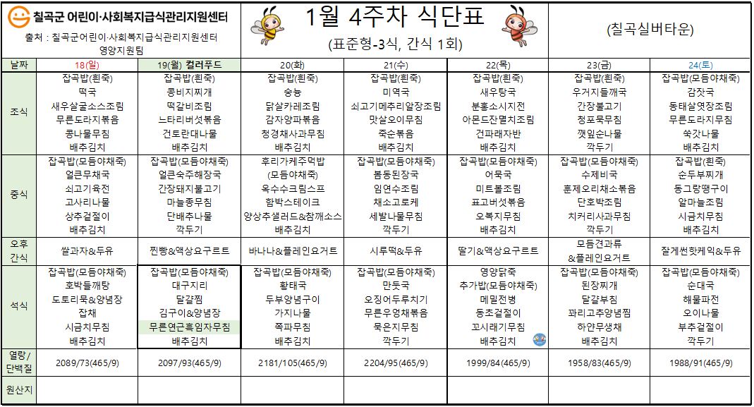 | Á¦ ¸ñ | 2026³â 1¿ù 4ÁÖÂ÷ ½Ä´ÜÇ¥ÀÔ´Ï´Ù. *^^* | ||