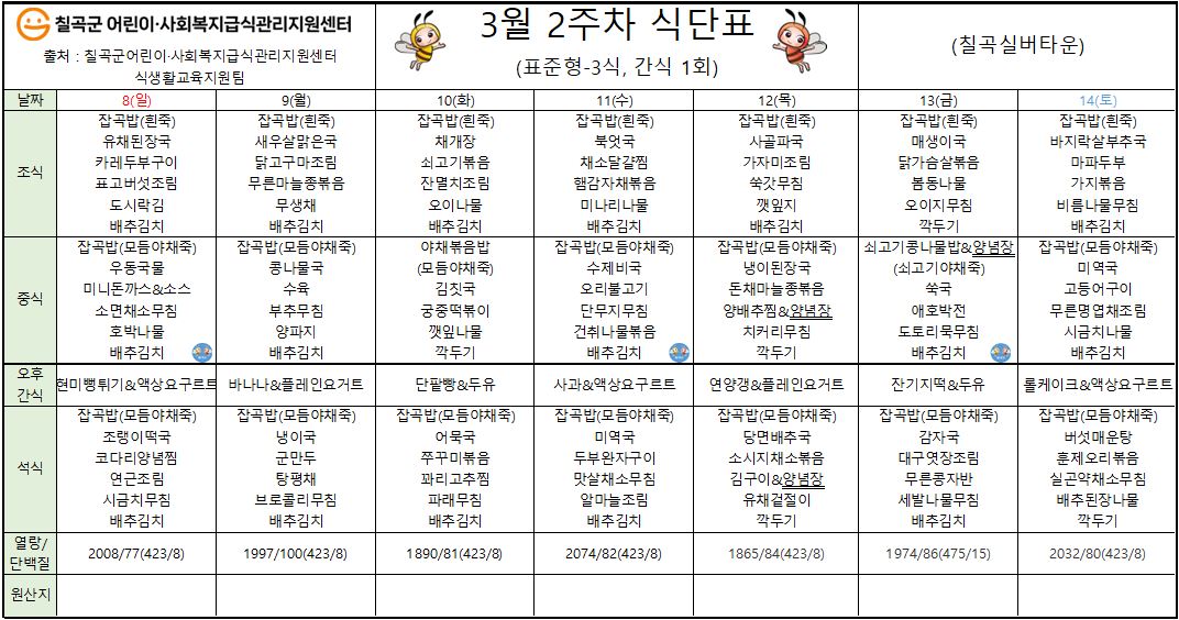 | Á¦ ¸ñ | 2026³â 3¿ù 2ÁÖÂ÷ ½Ä´ÜÇ¥ÀÔ´Ï´Ù. *^^* | ||